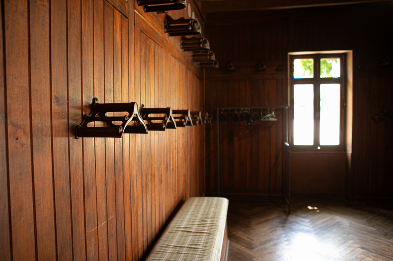 La sellerie, comme son nom l'indique, servait à entreposer les selles, filets et harnachements des chevaux. Elle est ornée de porte-selles et de porte-filets qui ont maintenant l'occasion de servir de porte-chapeaux et accessoires. Il y a aussi plusieurs porte-manteaux. Cette salle pleine de charme peut servir de vestiaire ou de pièce à photobooth.