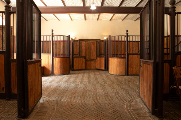 Les écuries dans lesquelles vous pouvez accueillir 60 personnes assises sont restées telles qu’elles étaient à l’origine, sur le modèle des écuries du Château de Chantilly.