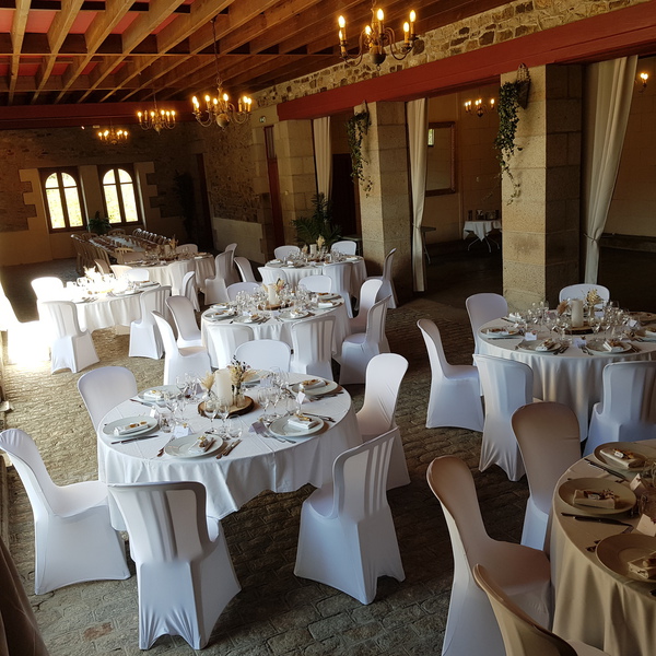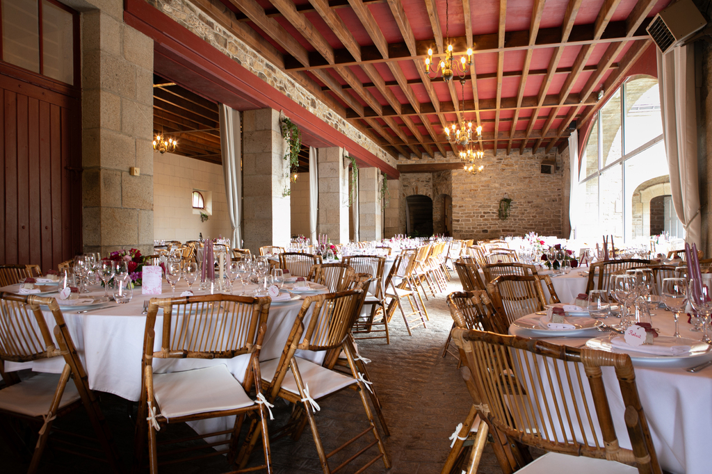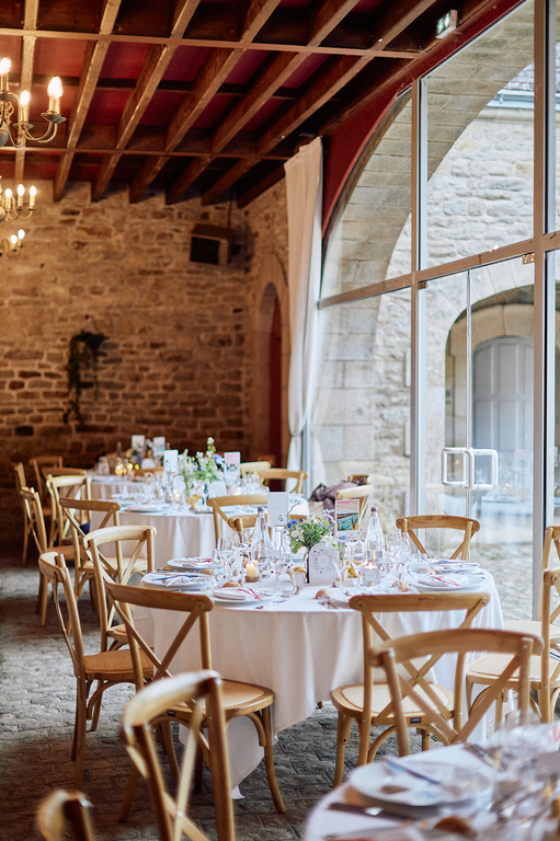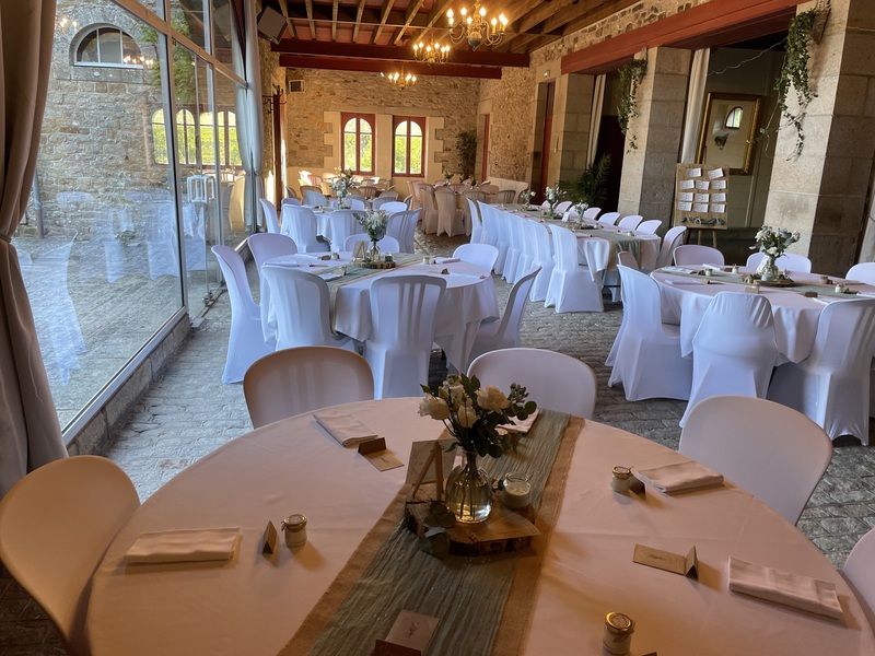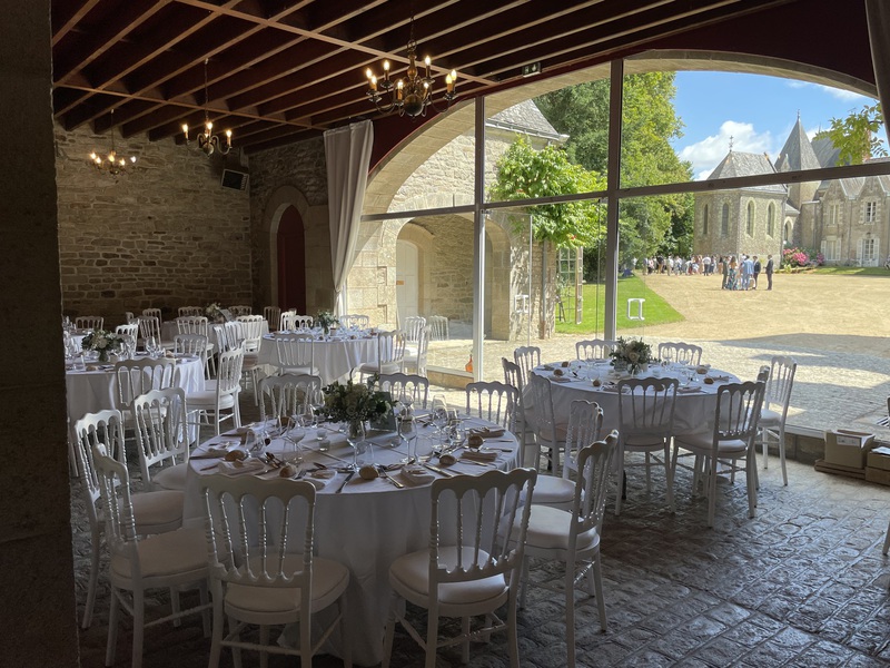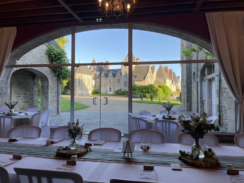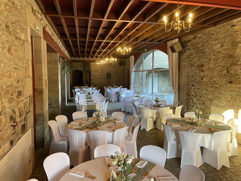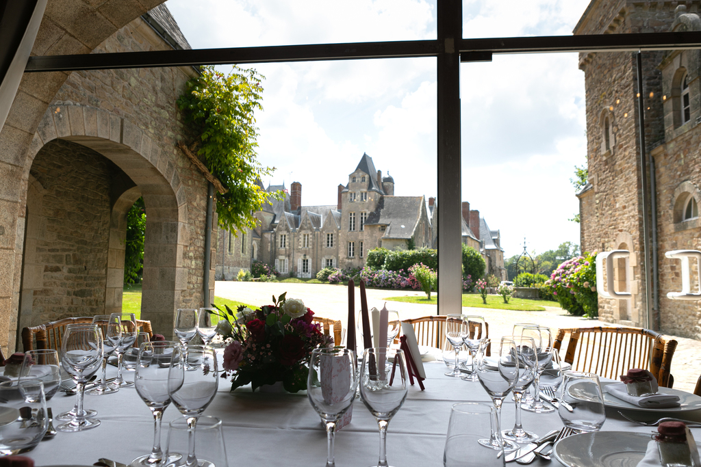 Les salles de réception, grâce à leur immense baie vitrée, offrent un panorama des plus grandioses pour vos invités. Vous pouvez accueillir tous vos convives dans une même salle avec vue sur le Château pour un dîner convivial.