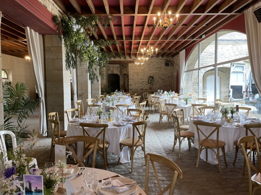 - Tables pour les invités, tables pour les buffets, chaises.